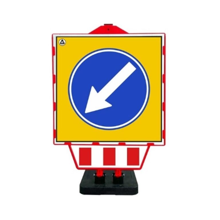 Sola Mecburi Yönlendirme Katlanır Uyarı Levhalı Yol Bariyeri
