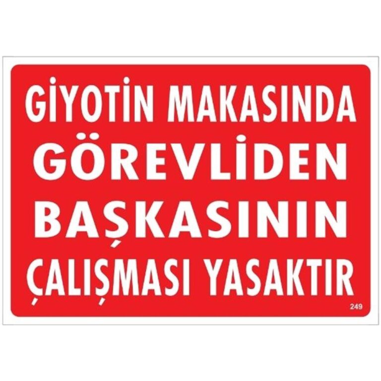 Giyotin Makasında Görevliden Başkasının Çalışması Yasaktır Uyarı Levhası
