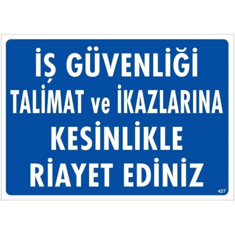 İş Güvenliği Talimat ve İkazlarına Kesinlikle Riayet Ediniz Uyarı Levhası