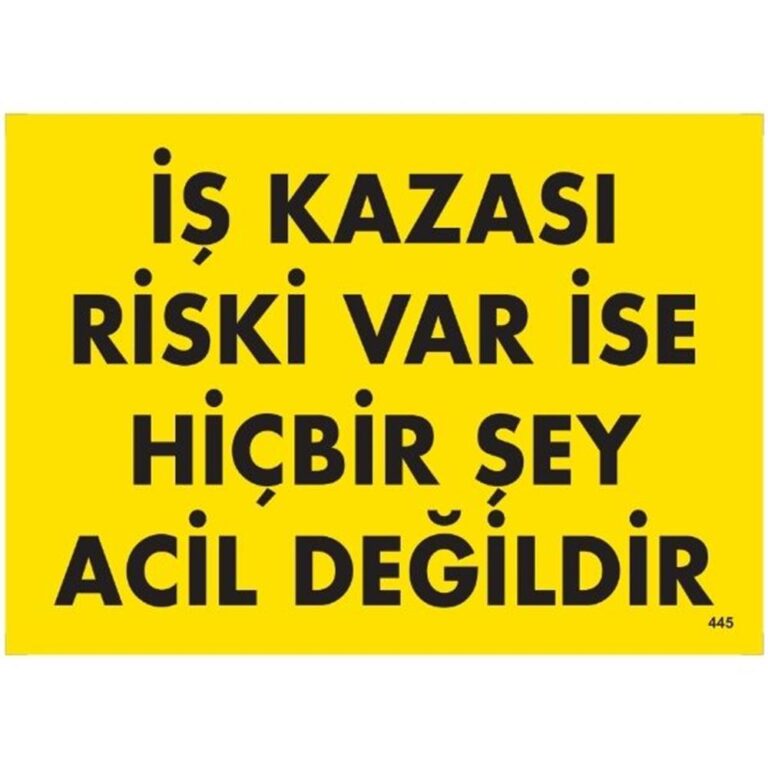 İş Kazası Riski Var İse Hiçbir Şey Acil Değildir Uyarı Levhası