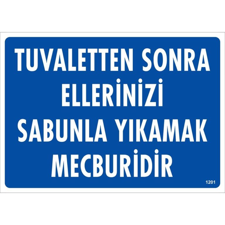 Tuvaletten Sonra Ellerinizi Sabunla Yıkamak Mecburidir Uyarı Levhası