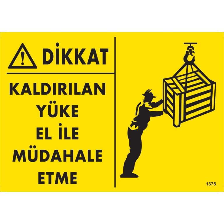 Dikkat Kaldırılan Yüke El İle Müdahale Etme Uyarı Levhası