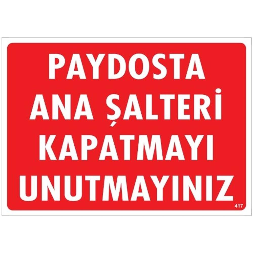 Paydosta Ana Şalteri Kapatmayı Unutmayınız Uyarı Levhası